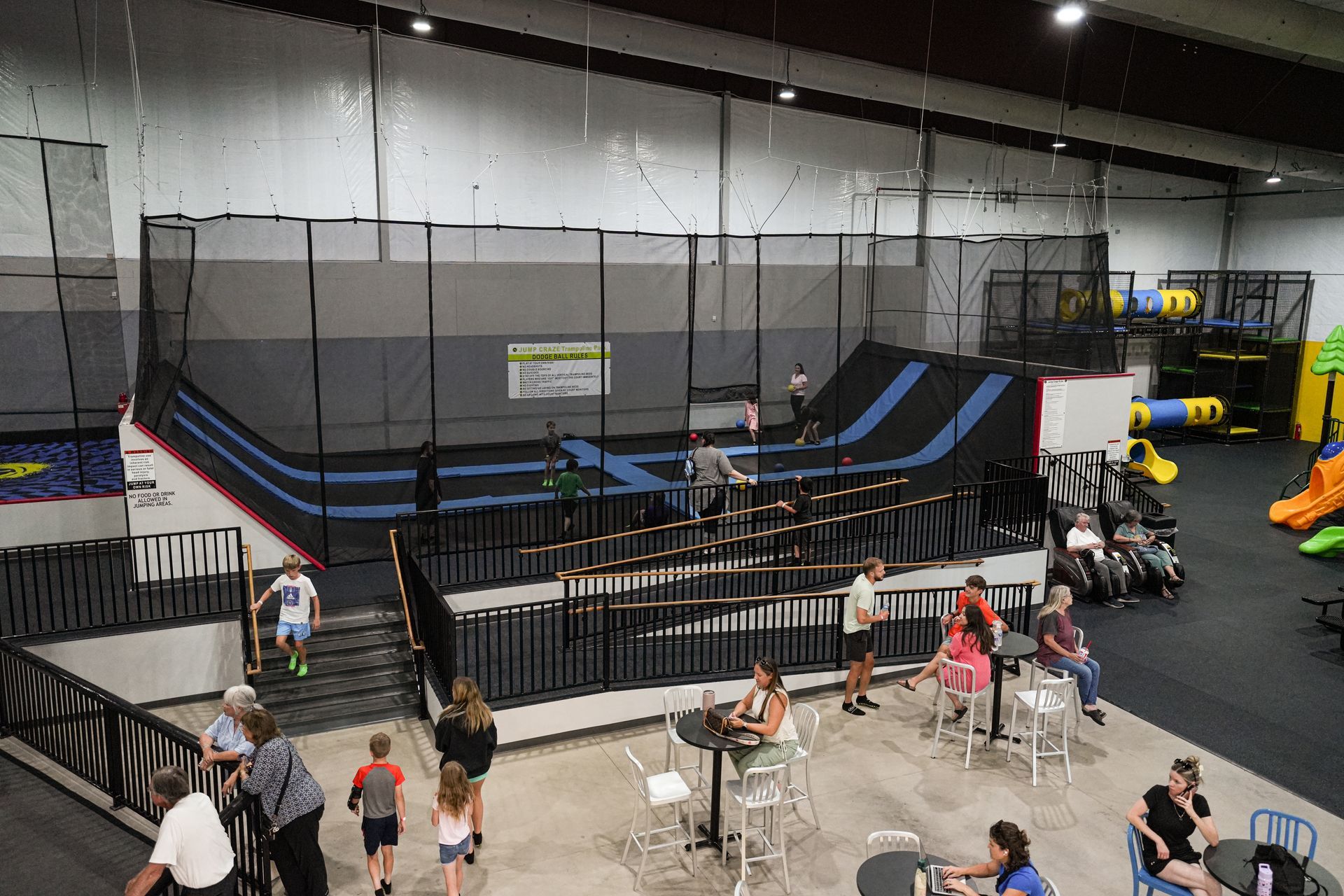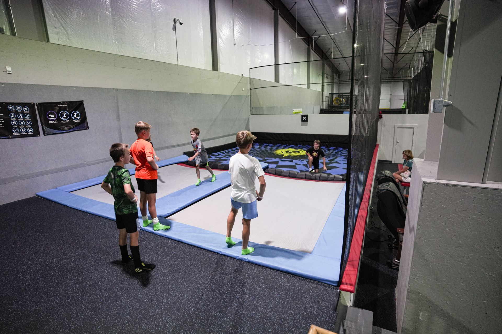 Freestyle jumping for all ages and sizes of guests. Spring into the air from our launch platforms, spine and angled walls. String together combos from platform to platform for a flippin' good time! Jump safe and be mindful of other jumpers in your area.